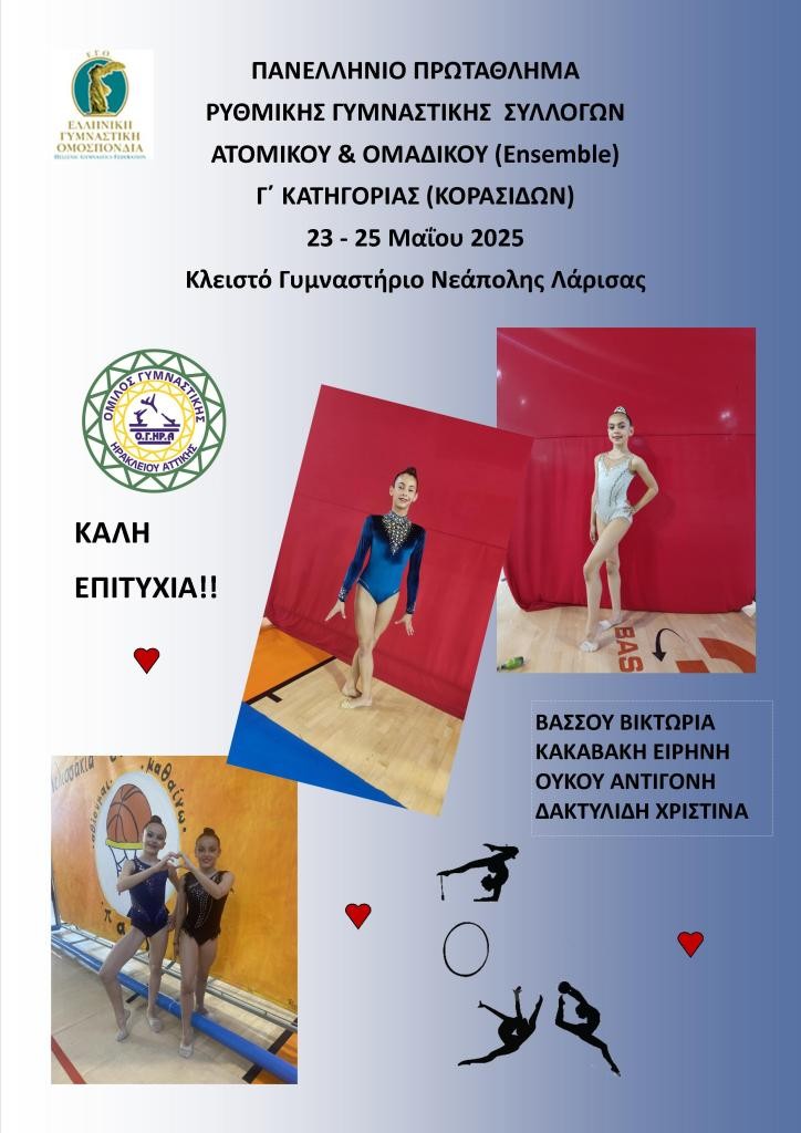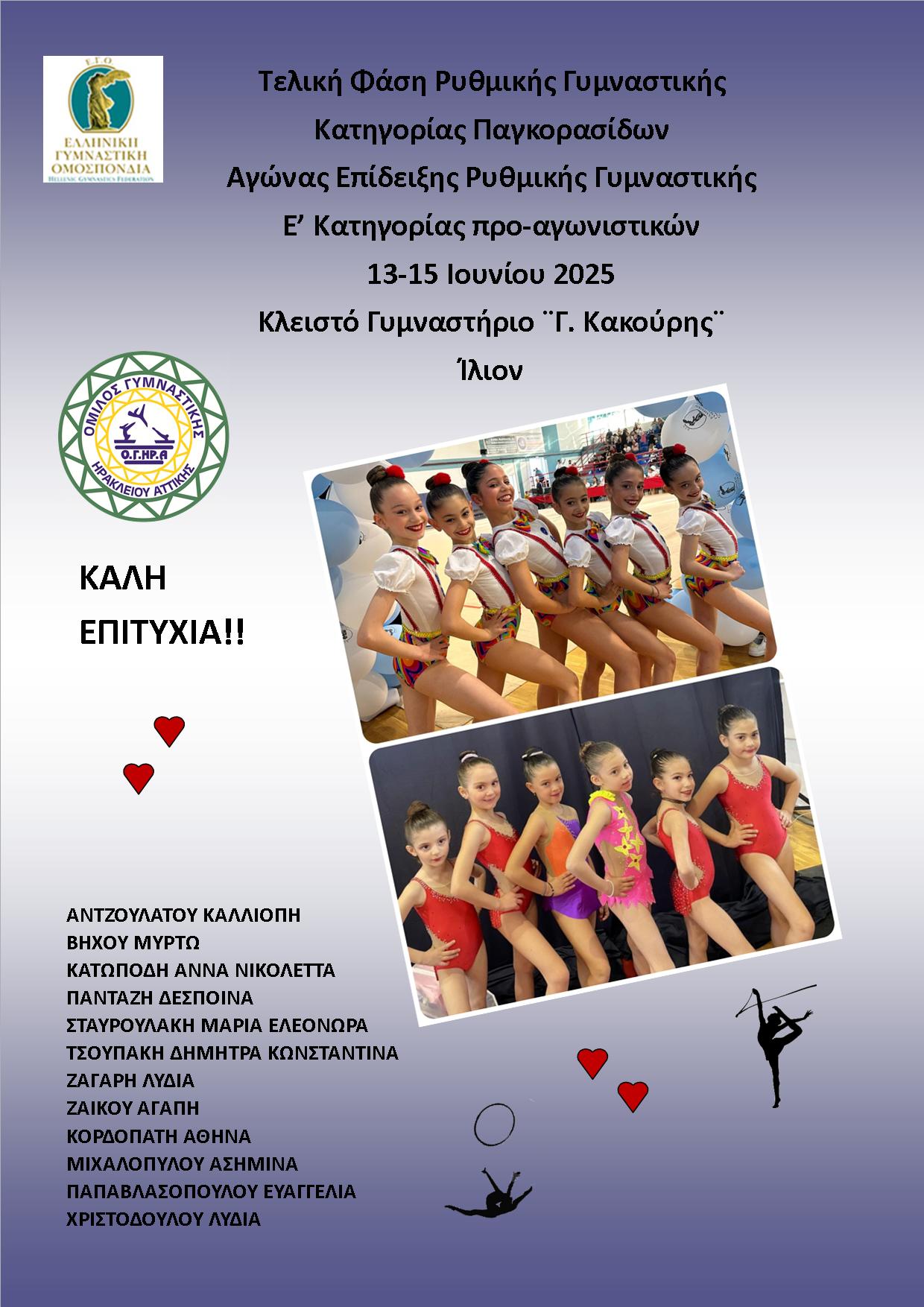 Ο Ο.Γ.ΗΡ.Α στον Προκριματικό Αγώνα Ρυθμικής Γυμναστικής Κατηγορίας Παγκορασίδων Α’ Επιπέδου Α’-Γ’-Δ’ Περιφερειών και στον Περιφερειακό Αγώνα Ρυθμικής Γυμναστικής Κατηγορίας Παγκορασίδων