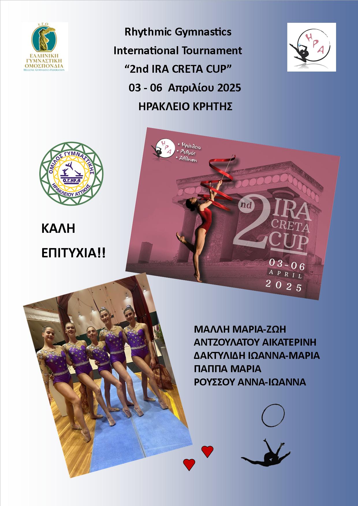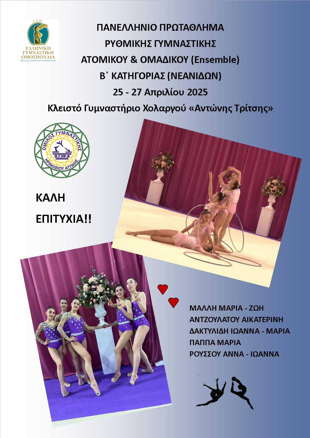 Ο Ο.Γ.ΗΡ.Α στο Πανελλήνιο Πρωτάθλημα Ρυθμικής Γυμναστικής Ατομικού, & Ομαδικού (Ανσάμπλ) Β’ Κατηγορίας (Νεανίδων)! Στο Πανελλήνιο Πρωτάθλημα Ρυθμικής Γυμναστικής Ατομικού, Ομαδικού